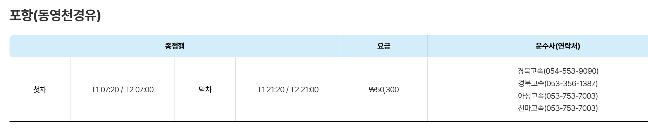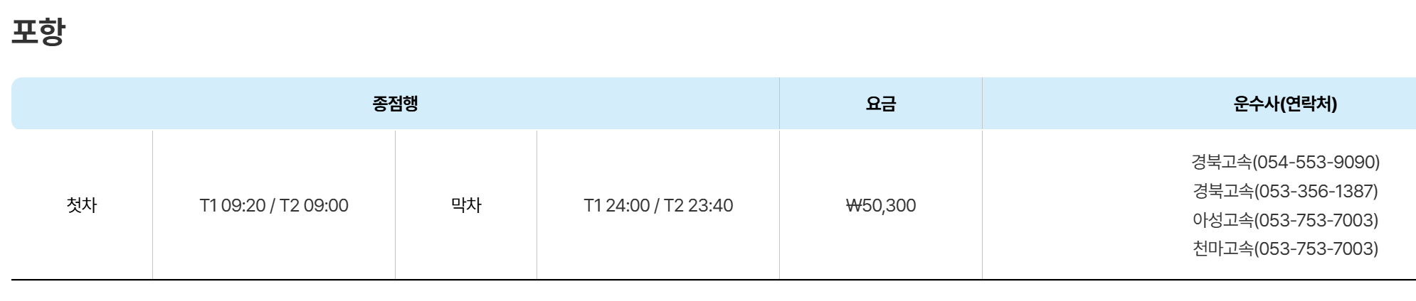 🎯 포항 경주 동영천 - 인천공항 버스 시간표