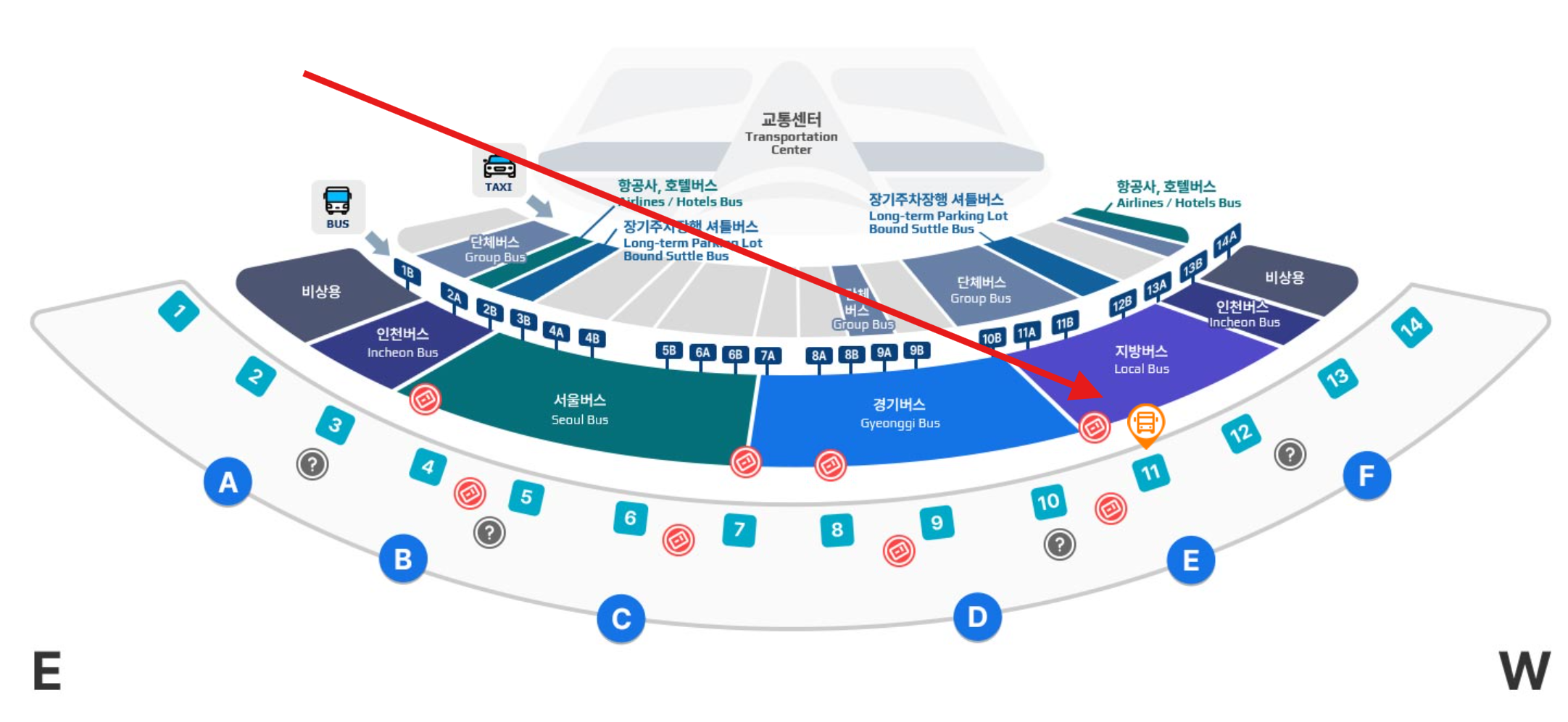 - 제 2 여객터미널 : 교통센터 지하 1층 2번