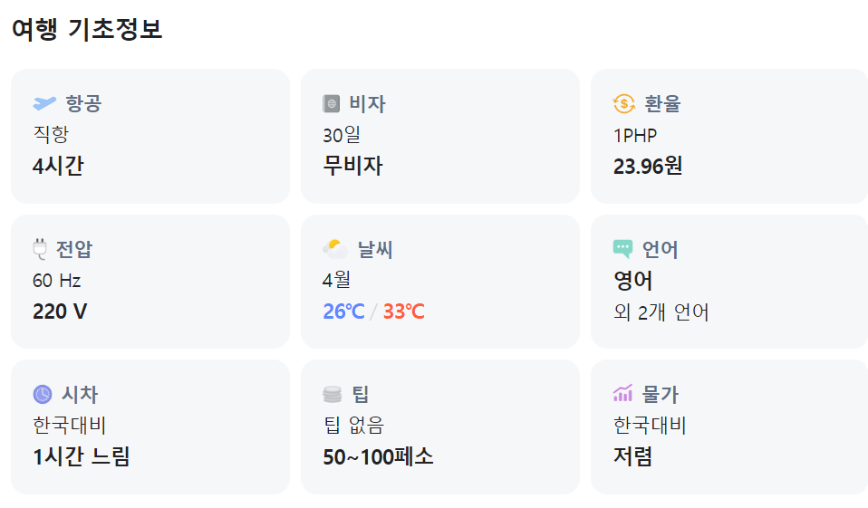 필리핀여행 준비물 - 이트래블 (e Travel) 등록