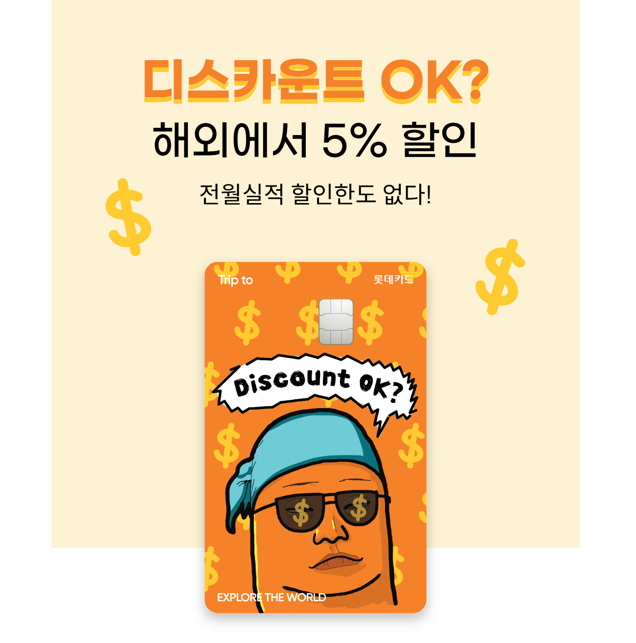 해외 여행을 자주 가시는 분들은 여행자특화로 만들어진 카드를 신청하면 적립이나 할인 혜택을 받을 수 있습니다. 빠니보틀 카드의 경우 전원 실적과 상관없이 해외결제 5% 할인을 받을 수 있는 프로모션을 진행중이 있으니 좋은 혜택 챙겨가시기 바랍니다.