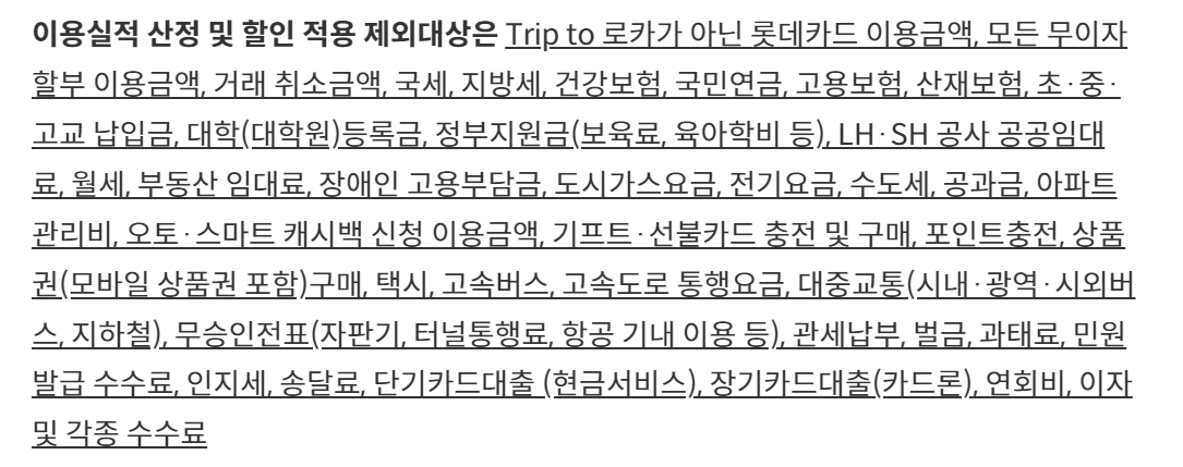 빠니보틀 카드(Trip to 로카) - 이용실적 산정 및 할인 적용 제외 대상