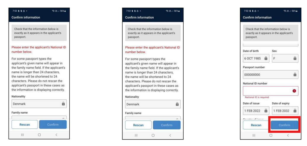 - 칩 인식이 끝나면 자동으로 신상 정보가 입력됩니다, 입력된 모든 정보가 맞는지 확인하세요