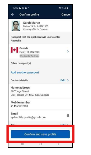 - 모든 내용이 정확하면 확인 및 저장 Confirm and save profile 클릭