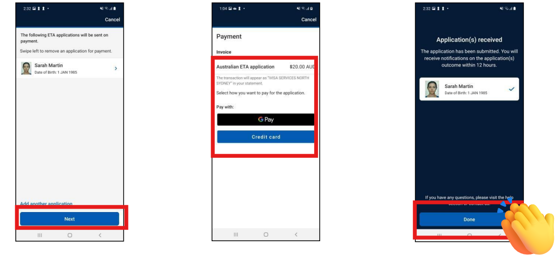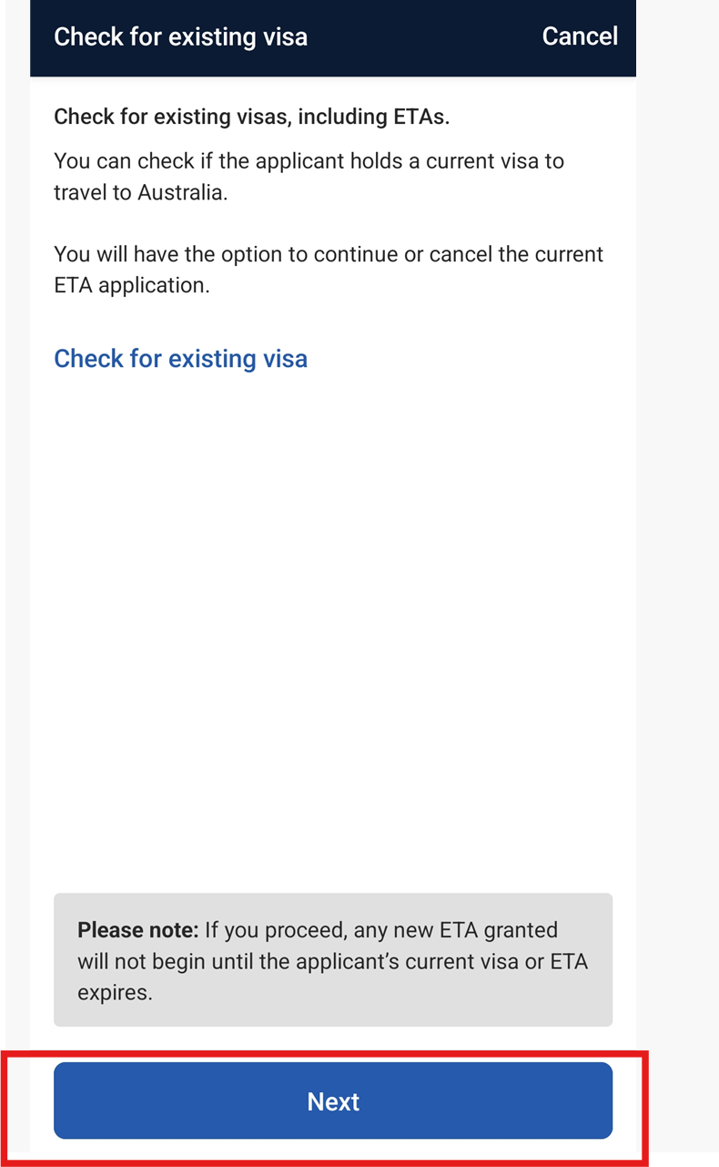 - Next를 클릭후 ETA 신청비 application $20 AUD 를 내야합니다.