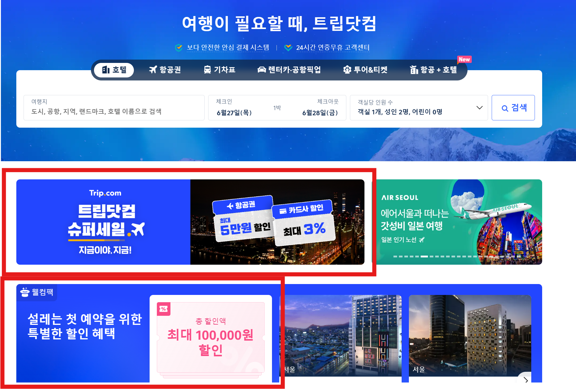 - 그리고 첫 이용자를 위한 웰컴팩에서 할인을 많이 받을 수 있어요!