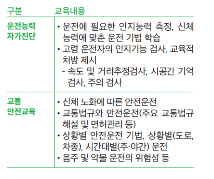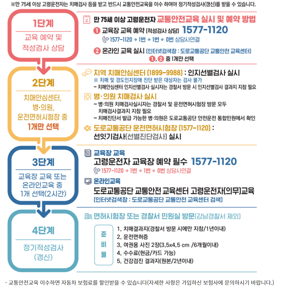 - 의무 : 75세 이상 운전자 중 면허갱신 대상자
