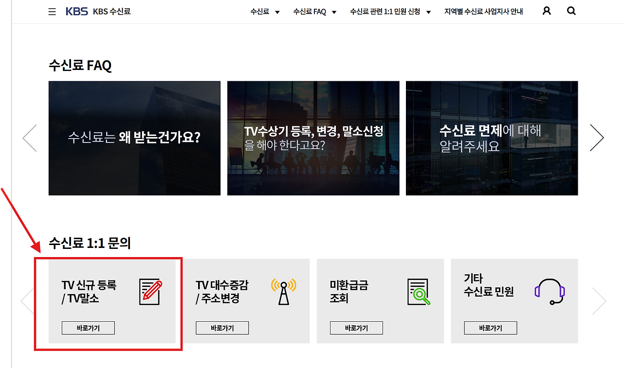 2. 홈페이지 아래 TV 신규등록/ TV말소를 클릭!