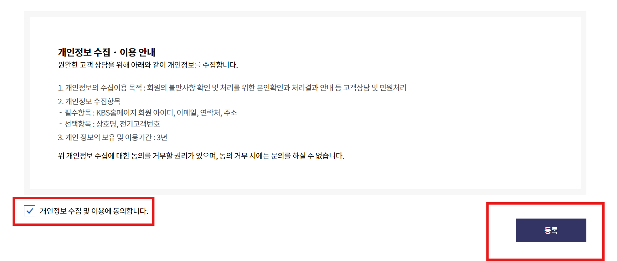 7. 동의 클릭하고 등록하면 완료!