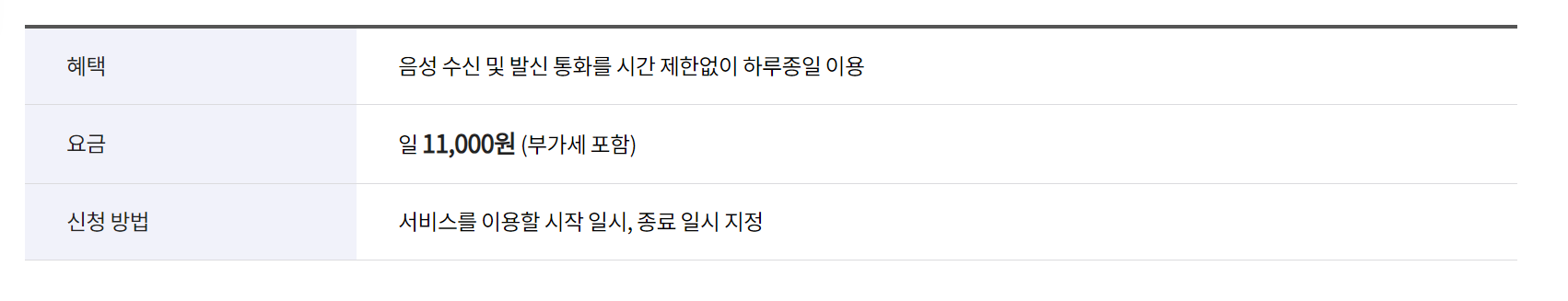 KT해외로밍 통화 - 로밍 ON 음성 하루종일 (일별요금제)