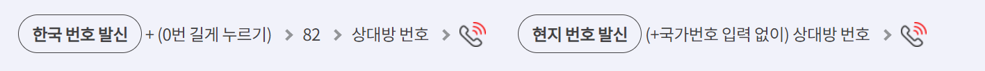 - 해외 현지 통신망 사정에 따라 서비스가 제한될 수 있으며, 이용이 원활하지 않을 경우 아래 ‘로밍 통화 방법’을 확인하시거나, 다른 통신사로 변경하여 이용하시기 바랍니다.