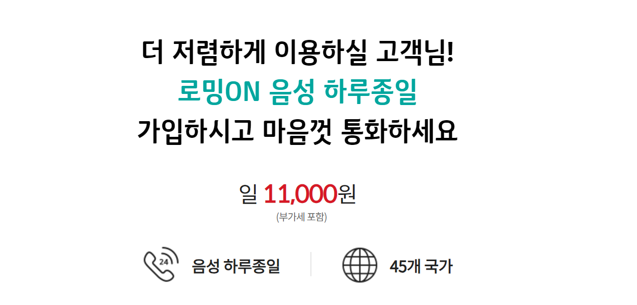 | KT해외로밍 - 로밍 on 음성 하루종일 |