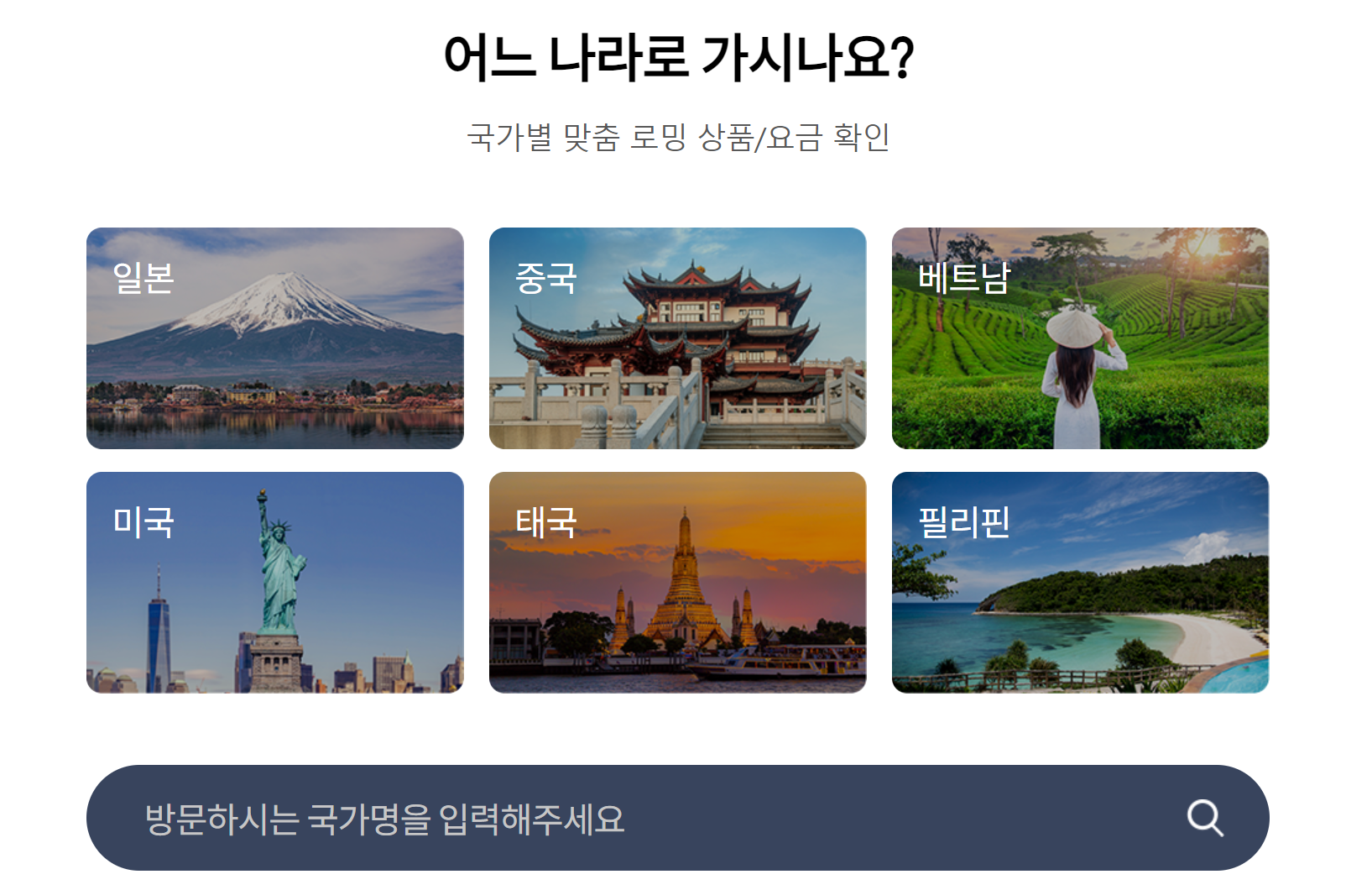 - 해외 제휴 통신사 사정으로 갑자기 서비스 제공이 중단되는 경우가 있사오니, '지원국가' 확인 후 가입하시기 바랍니다.