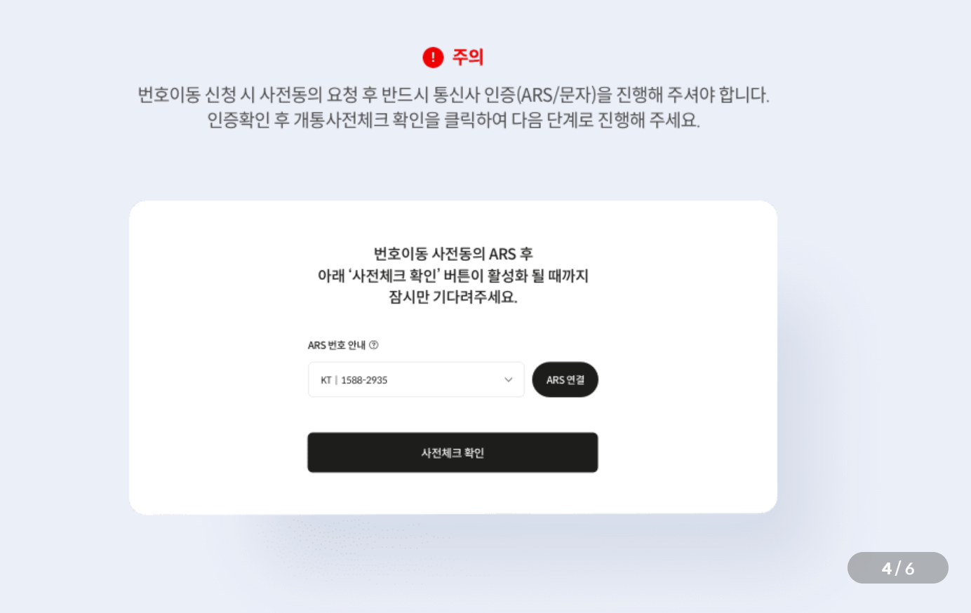 - 셀프개통 중, 전 통신사 해지로 모바일 데이터가 끊길 수 있으므로 Wi-Fi 환경에서 개통 진행 바랍니다.
