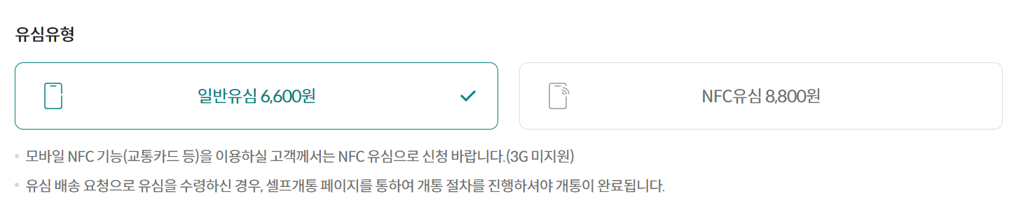 - 유심 배송 요청으로 유심을 수령하신 경우, 유심 비용은 후청구 됩니다.