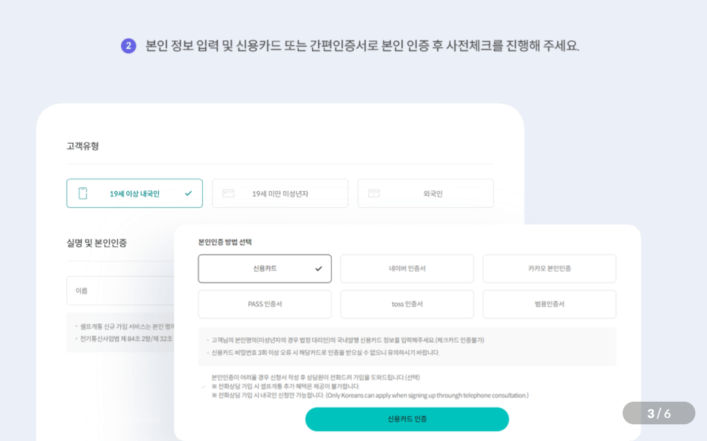 - 셀프개통 신규가입은 명의당 1회선만 가능합니다.