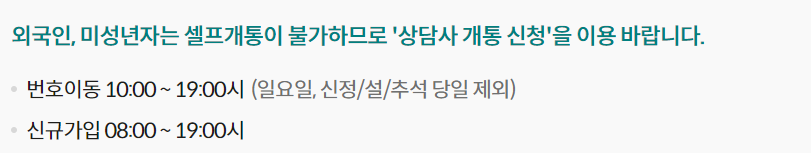 - 미성년자는 셀프개통 대상에서 제외됩니다.