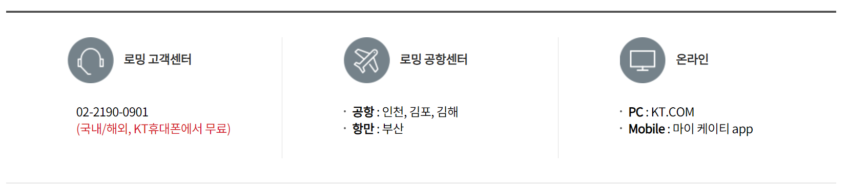 [ 서비스 신청(가입 및 해지)방법 ] 국내 : 고객센터 (1899-5000) 해외 : 로밍센터 (+82-2-810-6300, 유료) ※ 국내영업시간 (09:00~18:00) 기준으로 이용 가능 ※ 데이터로밍 차단부가서비스 가입되어 있는 경우, 부가서비스 해지 후 데이터로밍 부가서비스 이용 가능 ![]() |