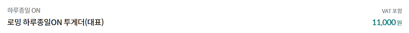 [ 서비스 이용요금(VAT포함) ] 고객이 신청한 시각부터 24시간 단위로 신청기간 동안 1일 요금이 부과 됩니다. -하루종일ON 투게더(대표) 이용고객: 1일 11,000원 -하루종일ON 투게더(서브) 이용고객: 1일 5,500원 '하루종일ON 투게더(대표)' 가입 고객님은 데이터를 1회도 사용하지 않는 날에도 5,500원/일의 기본료가 부과 됩니다. '하루종일ON 투게더(서브)' 가입 고객님은 데이터를 1회도 사용하지 않은 날에는 요금이 청구 되지 않습니다. |