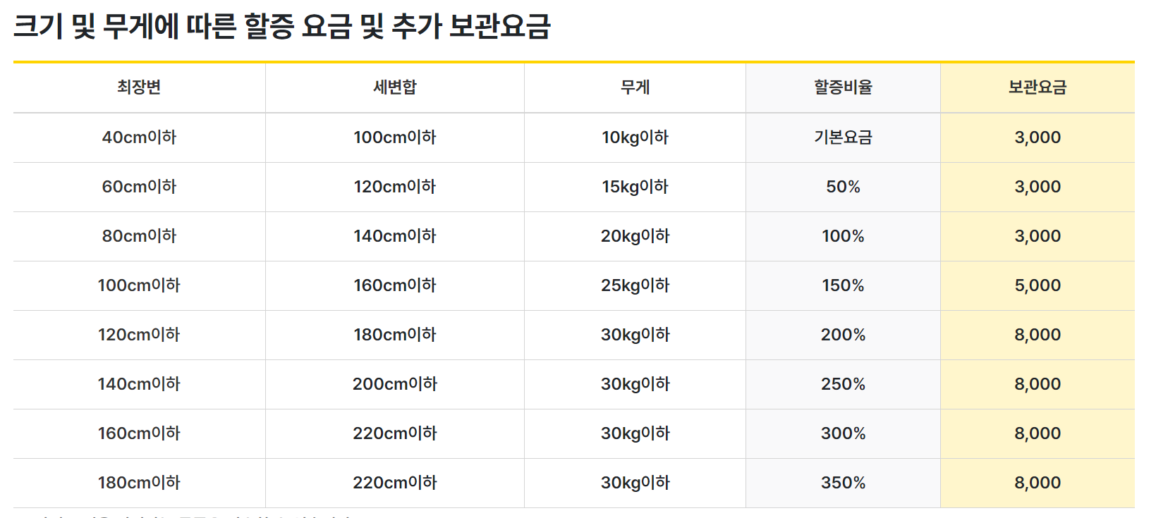 - 크기 또는 무게 상기규격을 벗어나는 물품은 접수할 수 없습니다.