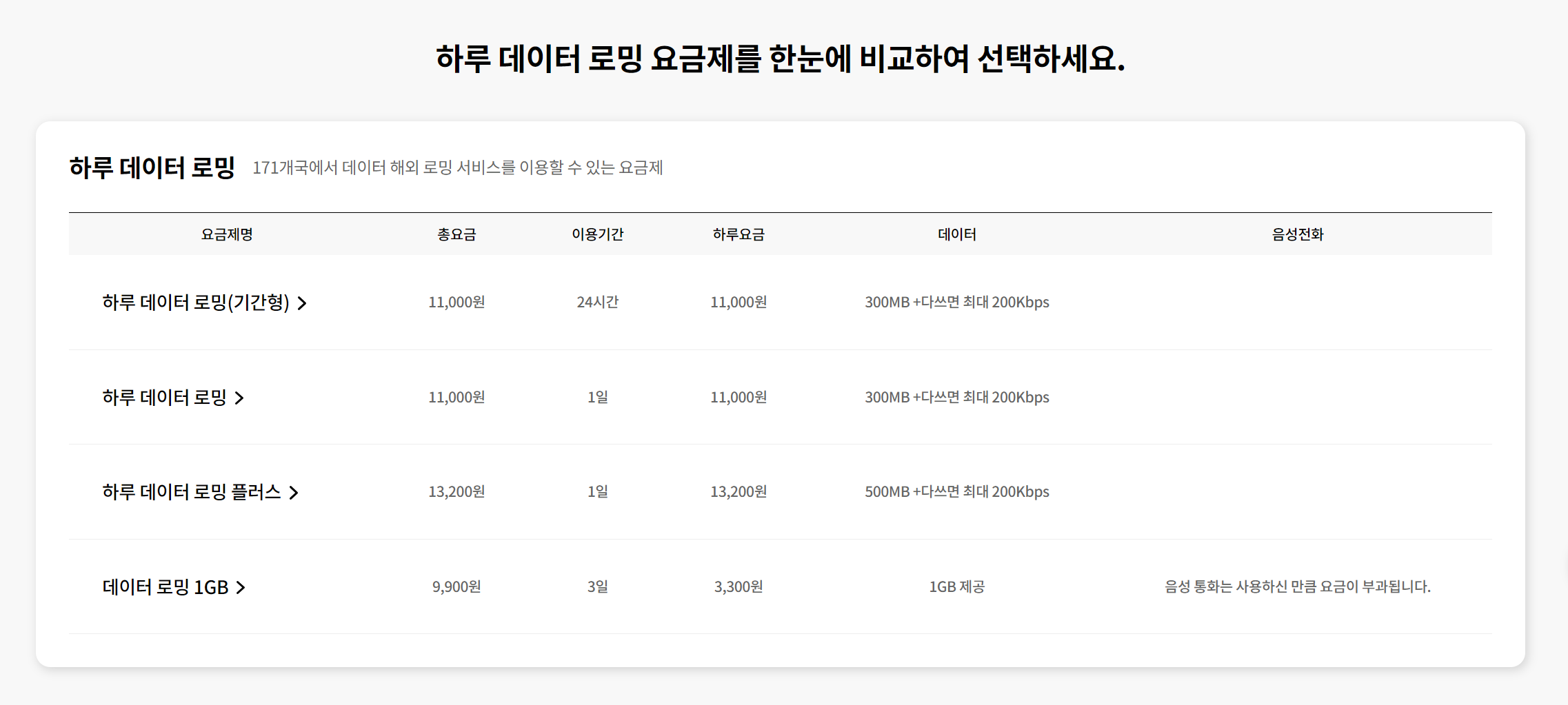 3. 하루 데이터 로밍 요금제