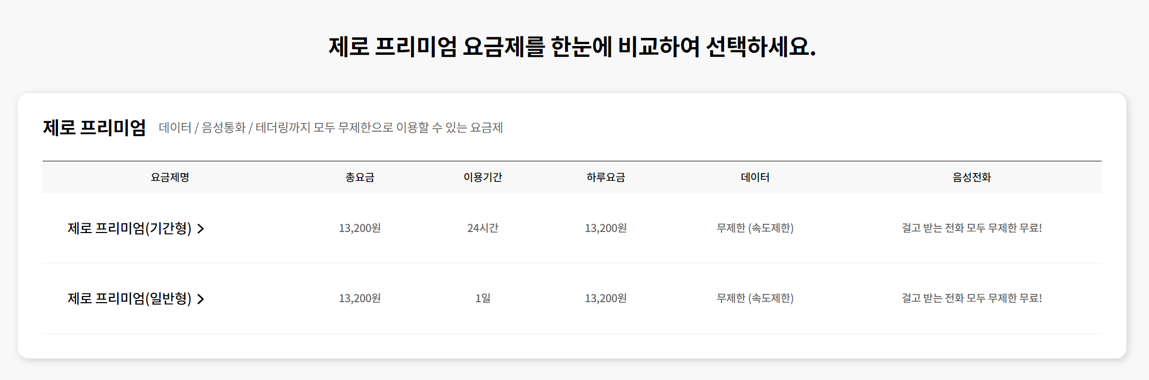 1. 제로 프리미엄 요금제