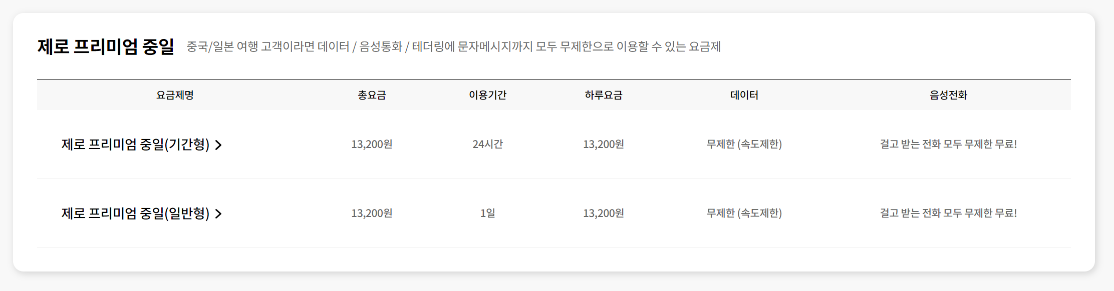 (2) 제로 프리미엄 중일 (기간형 / 일반형) - 중국&일본