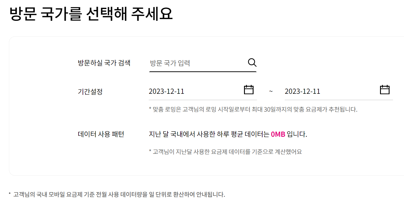 - 다른 데이터 및 음성통화 해외로밍 요금제와 중복으로 이용할 수 없습니다.