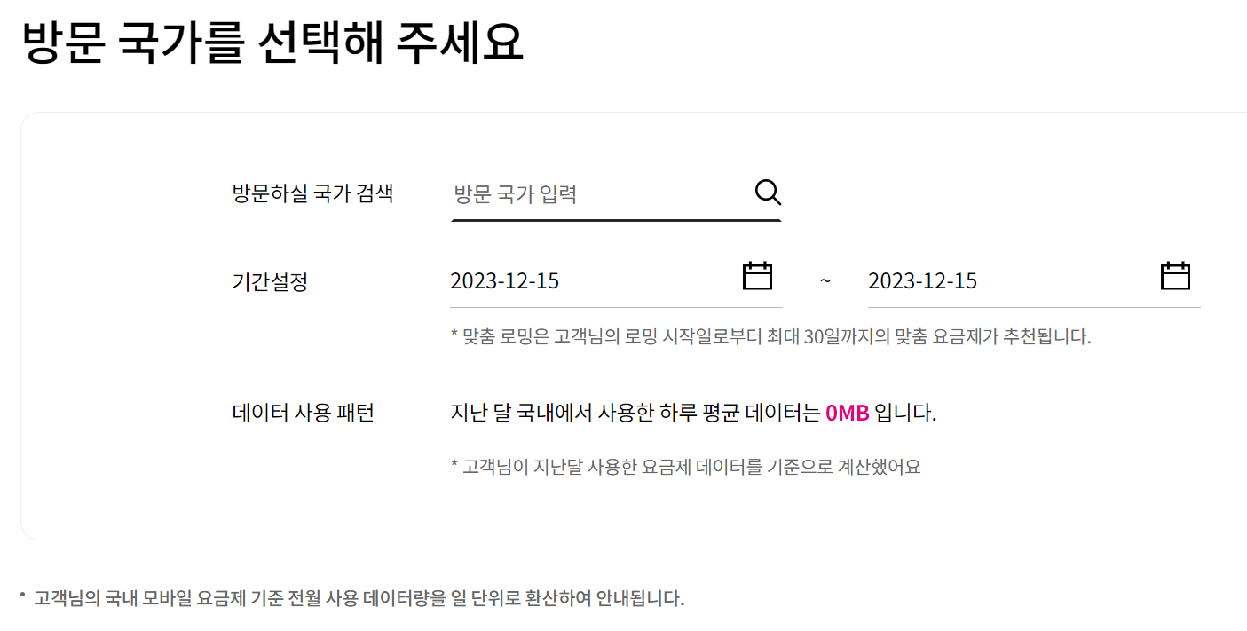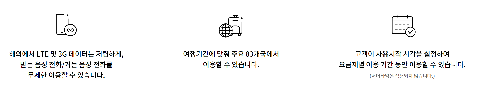 - 다른 데이터 및 음성통화 해외로밍 요금제와 중복으로 이용할 수 없습니다.