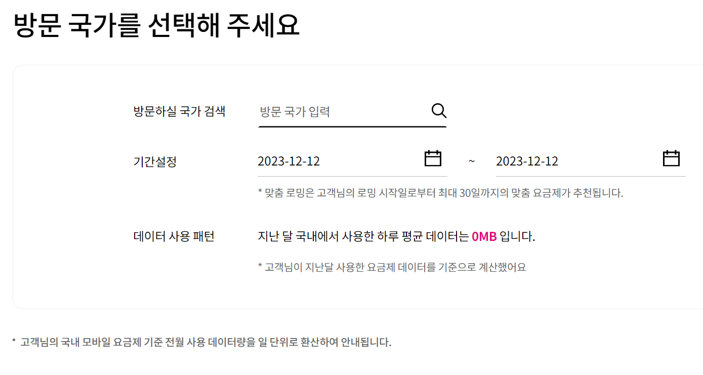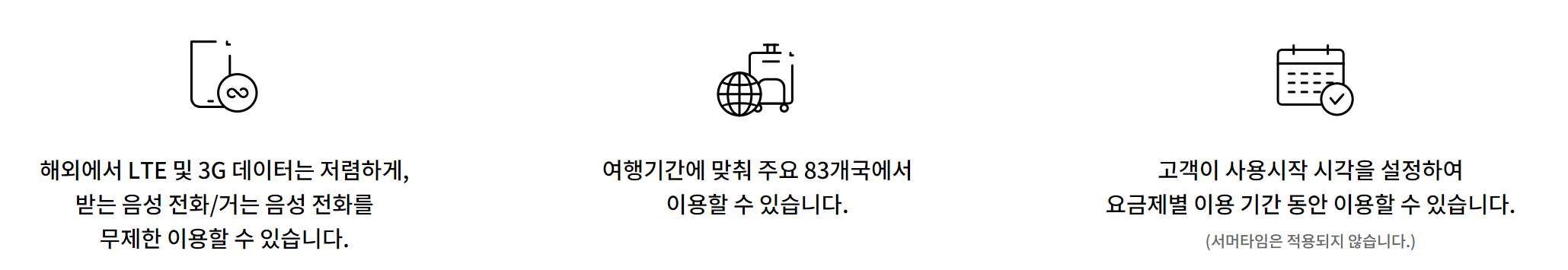 - 다른 데이터 및 음성통화 해외로밍 요금제와 중복으로 이용할 수 없습니다.