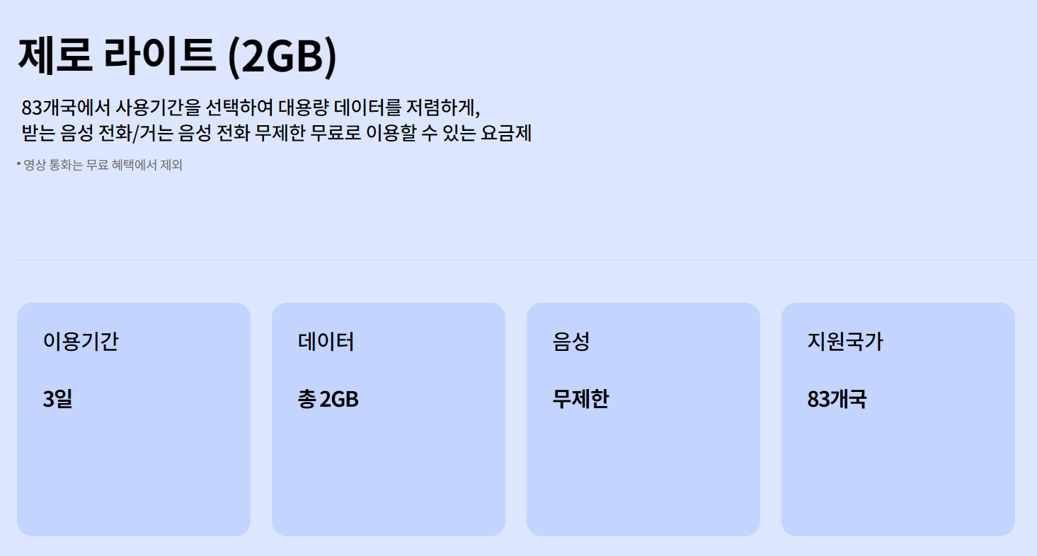 LG U+ 해외로밍 - 한 달 기간형 : 제로 라이트 (4GB/ 8GB, 무제한 통화)