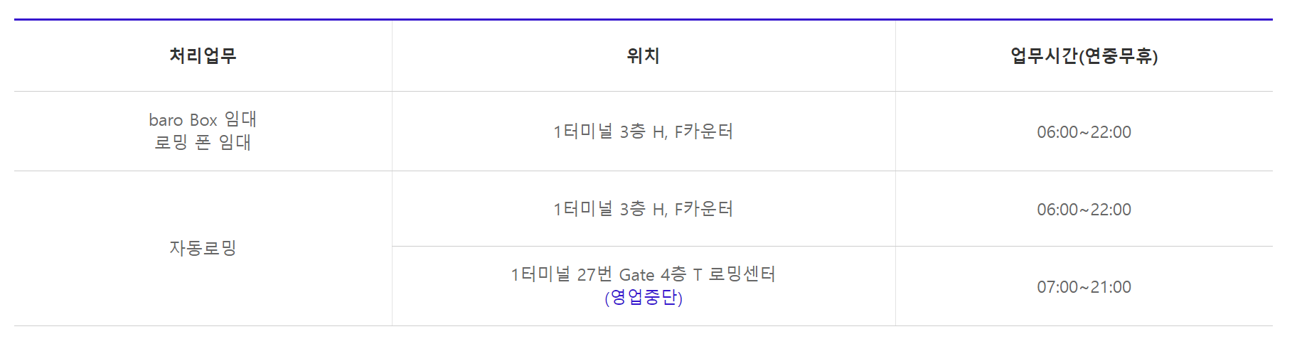 2. SK 해외로밍 공항센터 - 김포 공항 (오전 6:30 ~ 오후 10시 연중무휴)