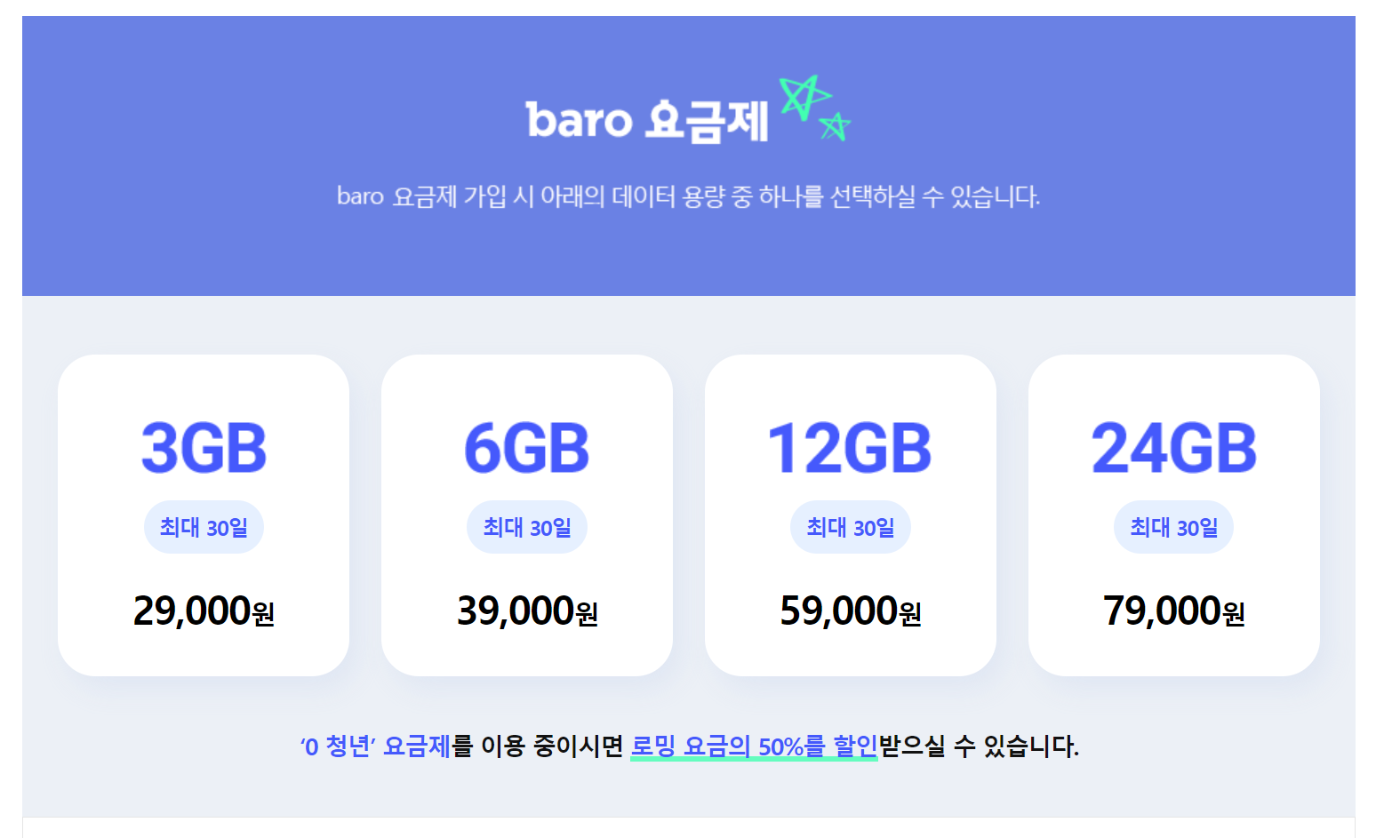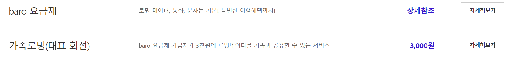 1. SK해외로밍 - Baro요금제 / 가족로밍