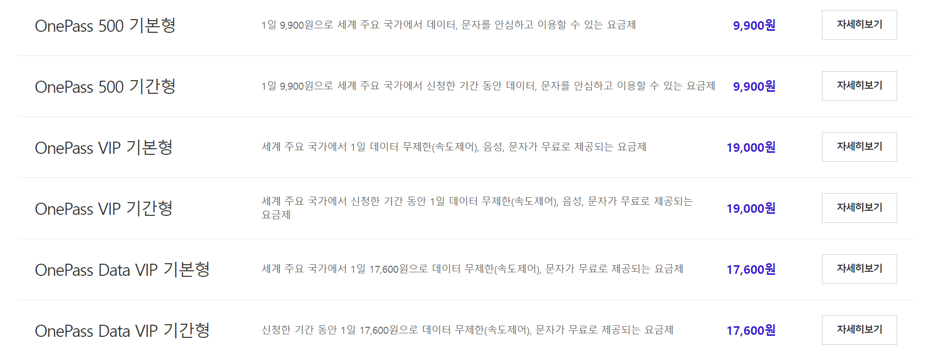 2. One Pass 로밍 요금제