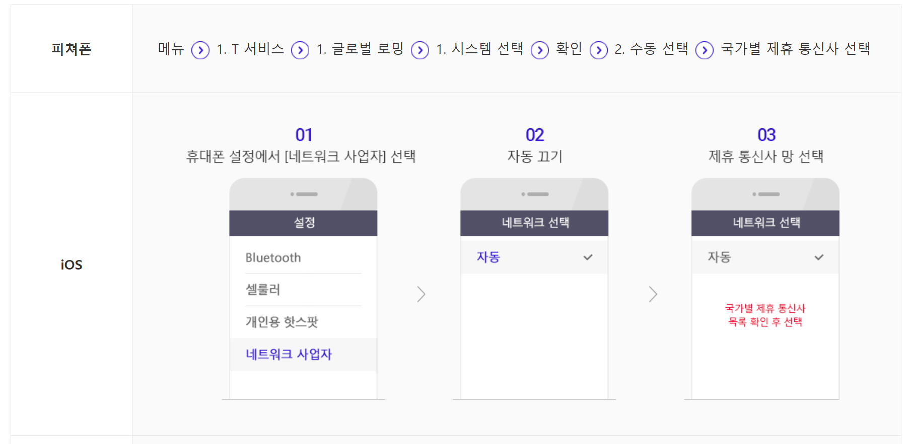 [ 국가별 제휴 통신사 망 수동 연결 ]