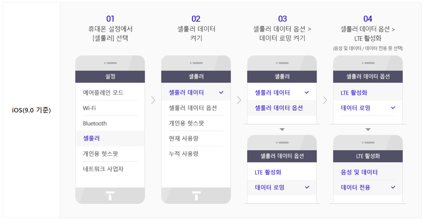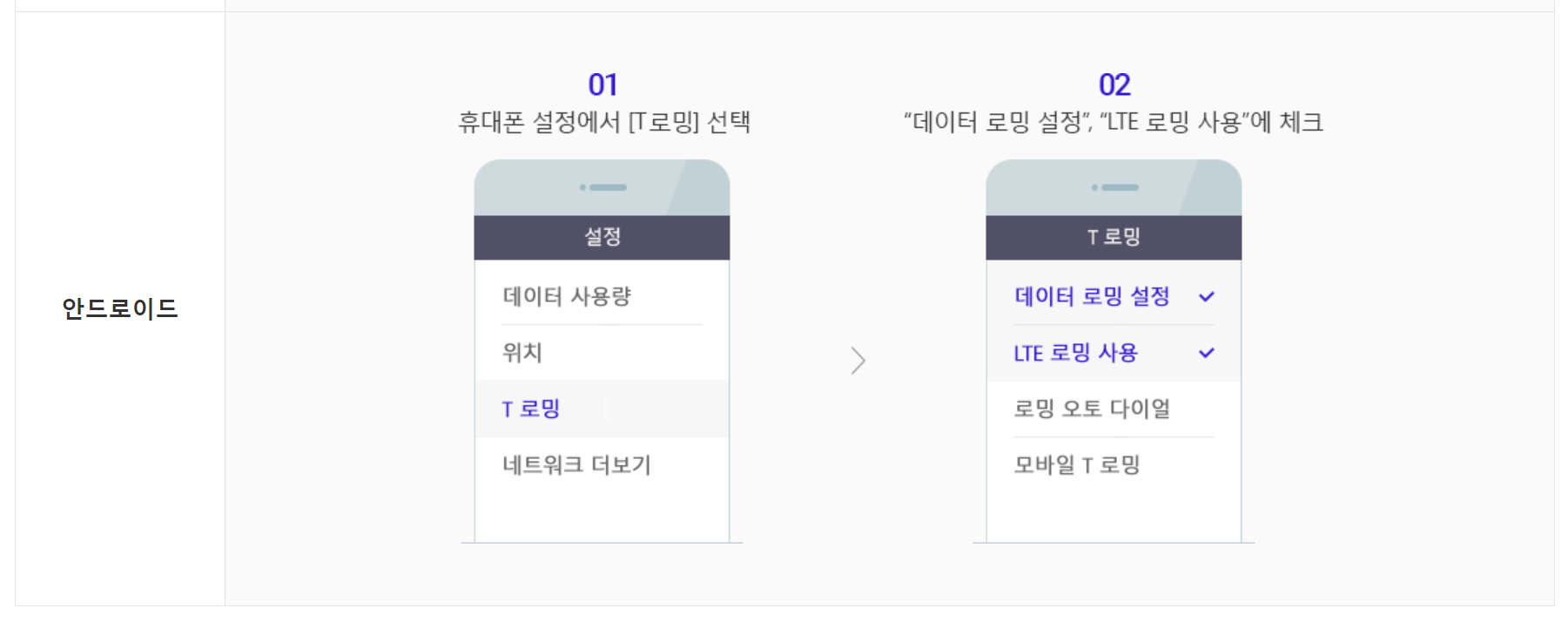 [ 휴대폰에서 LTE 로밍 설정 ]