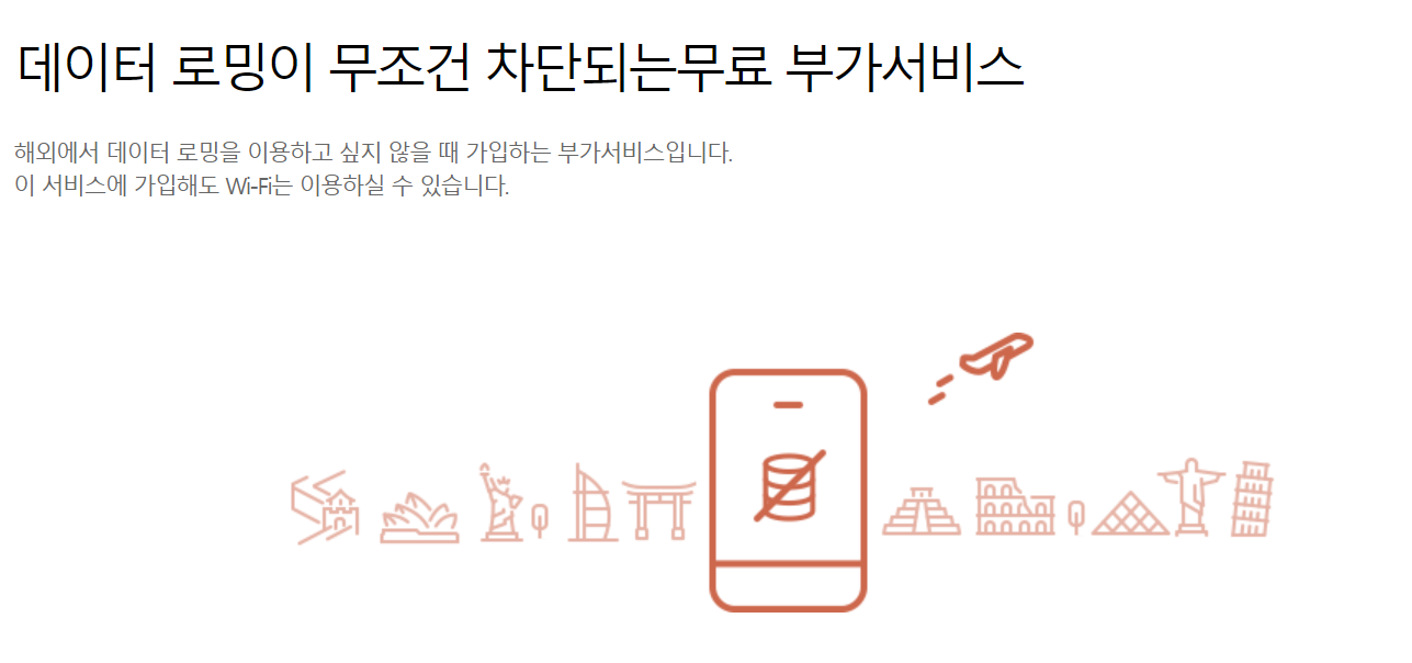 ![]() - 모바일 웹 또는 T 로밍 고객센터를 통해 무료 <데이터사용무조건차단>에 가입해 주세요. ☞ 데이터 사용무조건 차단 서비스 가입하러가기 (클릭) |