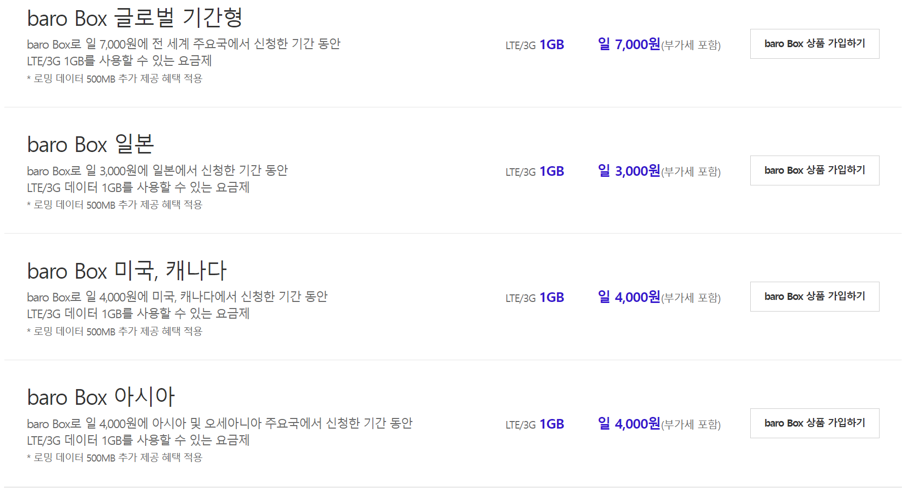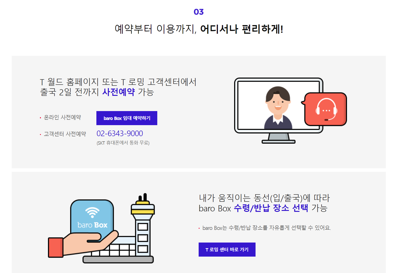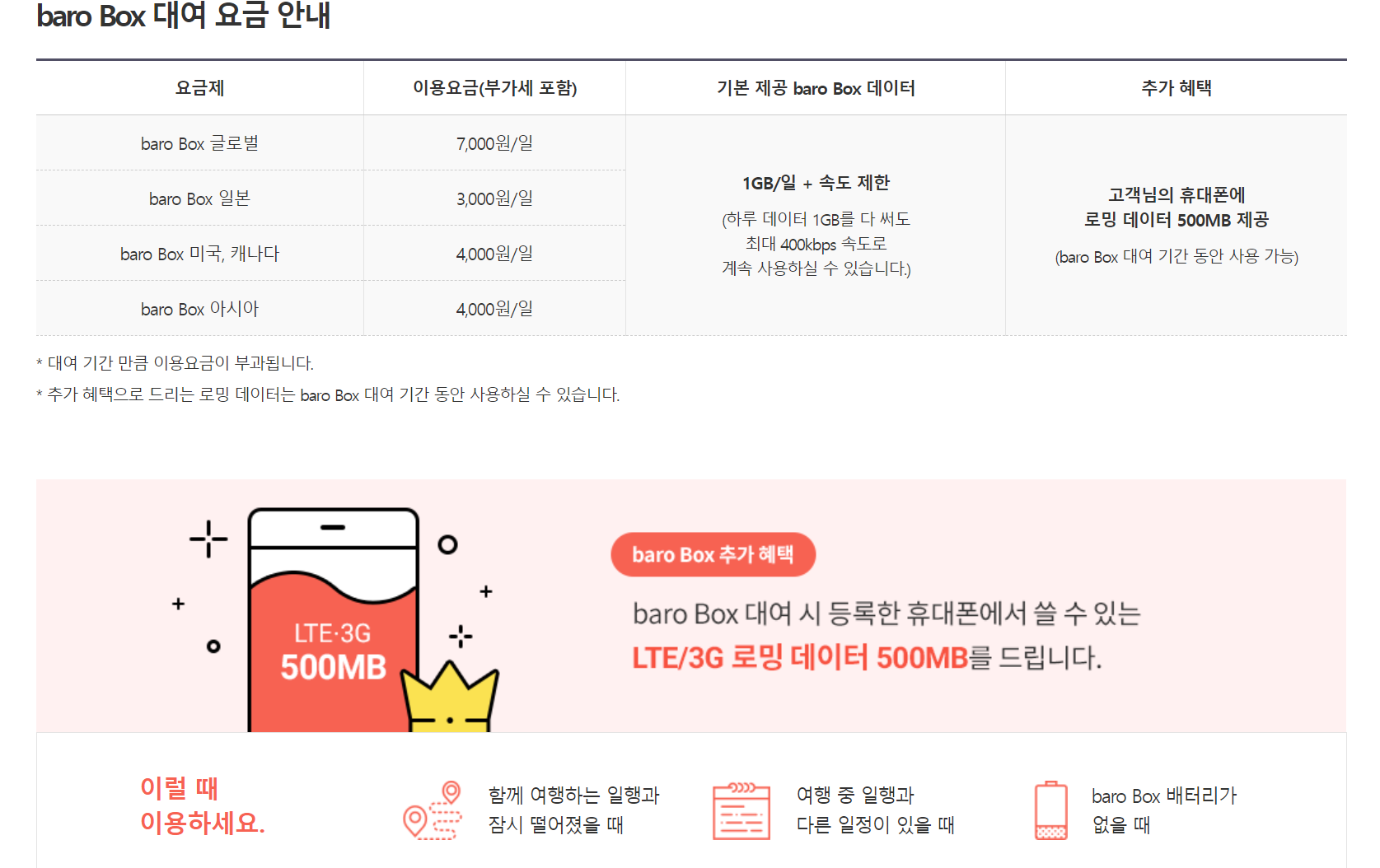 - 이동전화 회선의 정지예약이 있는 경우 baro Box 대여가 불가합니다.