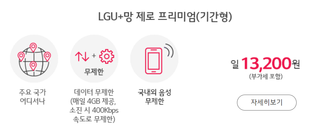1. LG U+ 망 해외 로밍 데이터 & 음성전화 무제한 - 제로 프리미엄 (기간형)